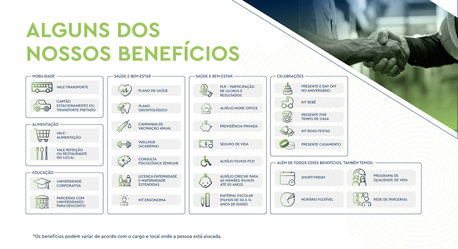 Aqui, sentimos muito orgulho do que fazemos, afinal, temos a oportunidade de construir um legado para o nosso país e gerar impacto positivo para a sociedade! Nosso ambiente de trabalho nos leva ainda mais longe, sempre aberto para acolher novas ideias, com cooperação e sem medo de errar. Tudo isso nos ajudou a construir um passado incrível, com resultados excepcionais em tão pouco tempo de existência, e nos ajudará a alcançar um futuro ainda melhor, pois continuamos em constante transformação, em busca de um crescimento acelerado e sustentável, parcerias estratégicas e, é claro, um time de pessoas que nos fez chegar até aqui e se desenvolveu junto com a nossa empresa. São elas que continuam escrevendo a nossa história todos os dias. E você, topa fazer parte dessa jornada com a gente?